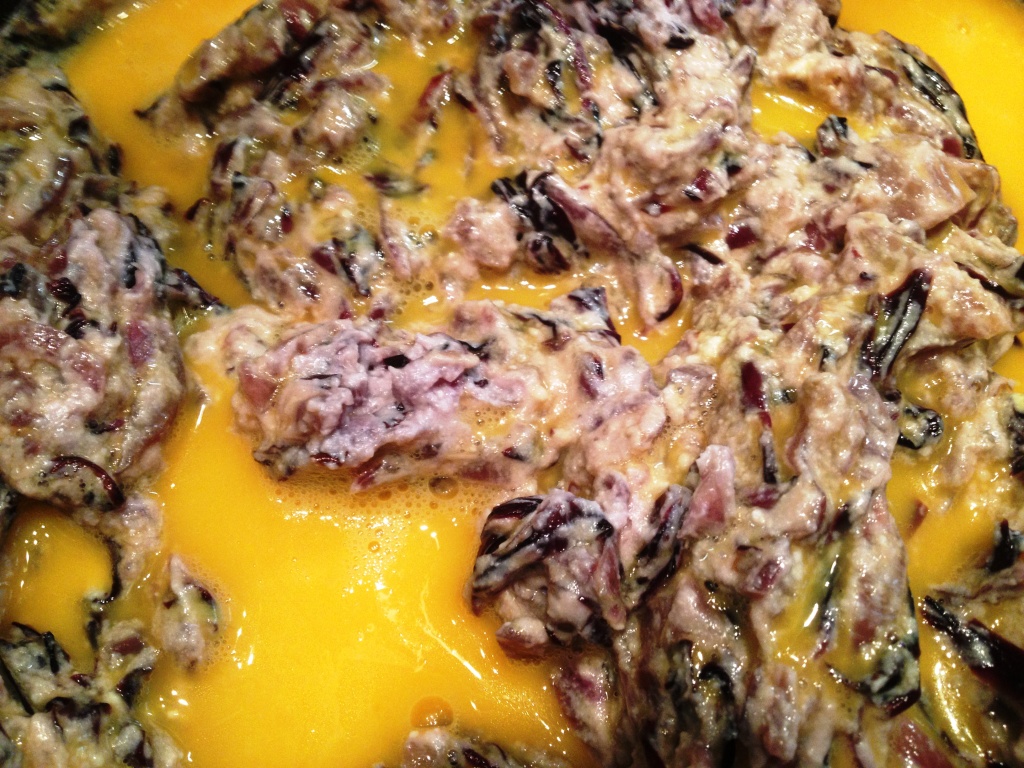 La trevisana e’ verdura tipica di questo periodo e la si puo’ usare in tanti modi. Io ho fatto una frittata al forno e l’ho servita come aperitivo finger food.
