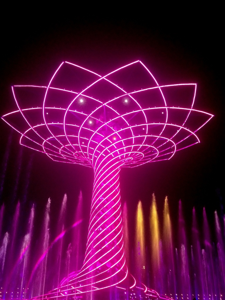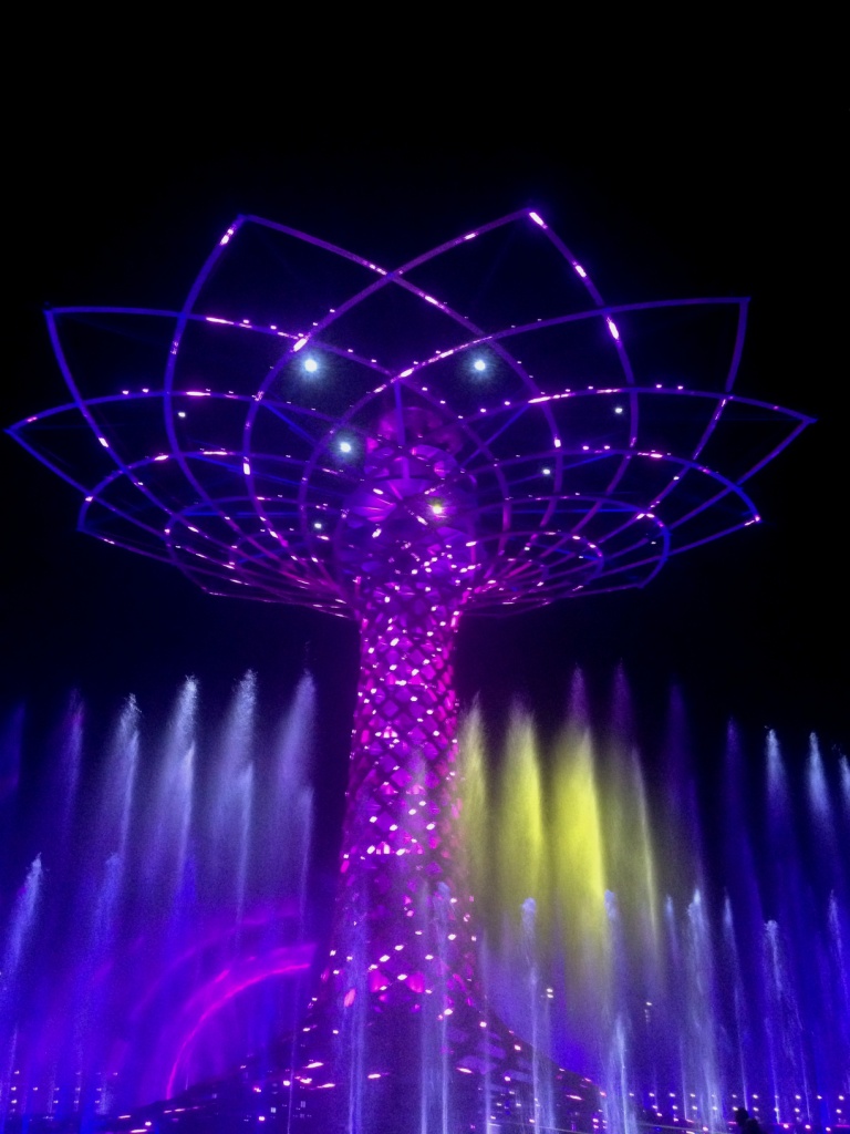 Verso sera inizia la grande corsa allo spettacolo dell’Albero della Vita che e’ sempre affascinante e bello. E’ sempre una magia che durante il giorno pian piano cresce in attesa degli spettacoli serali.