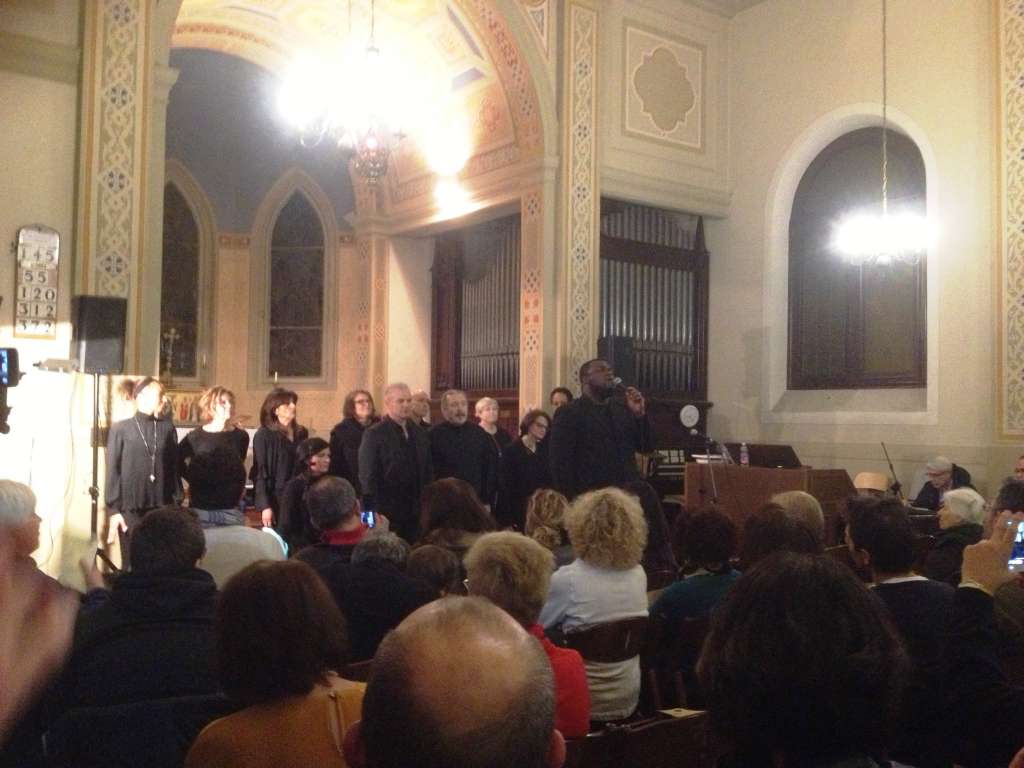 Al centro della chiesa un grande e alto  uomo di colore, dall’italiano simpaticamente accennato e letto su fogli dattiloscritti ha accolto e dato il benvenuto al nutrito pubblico.