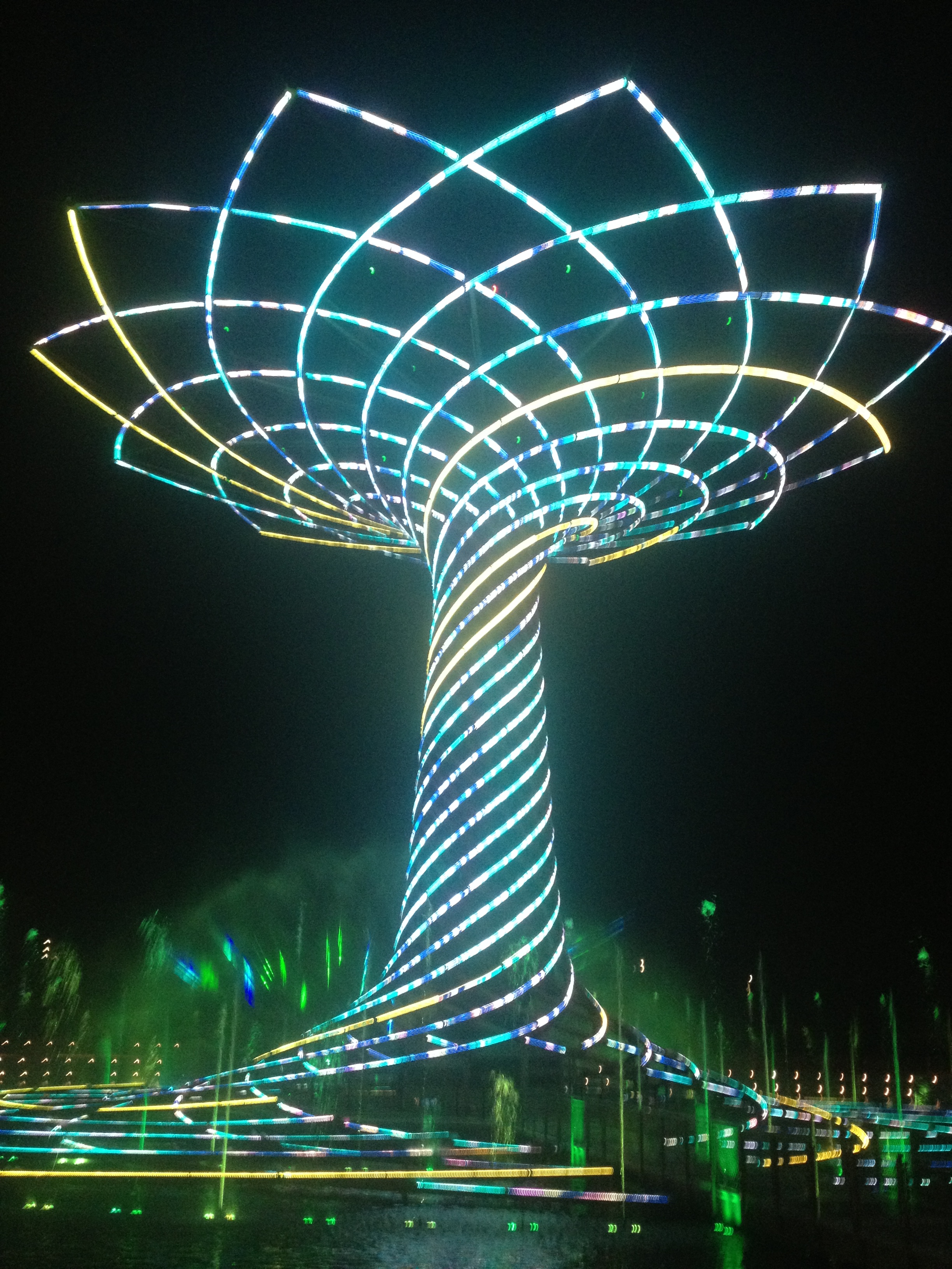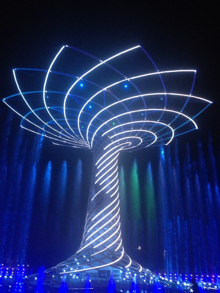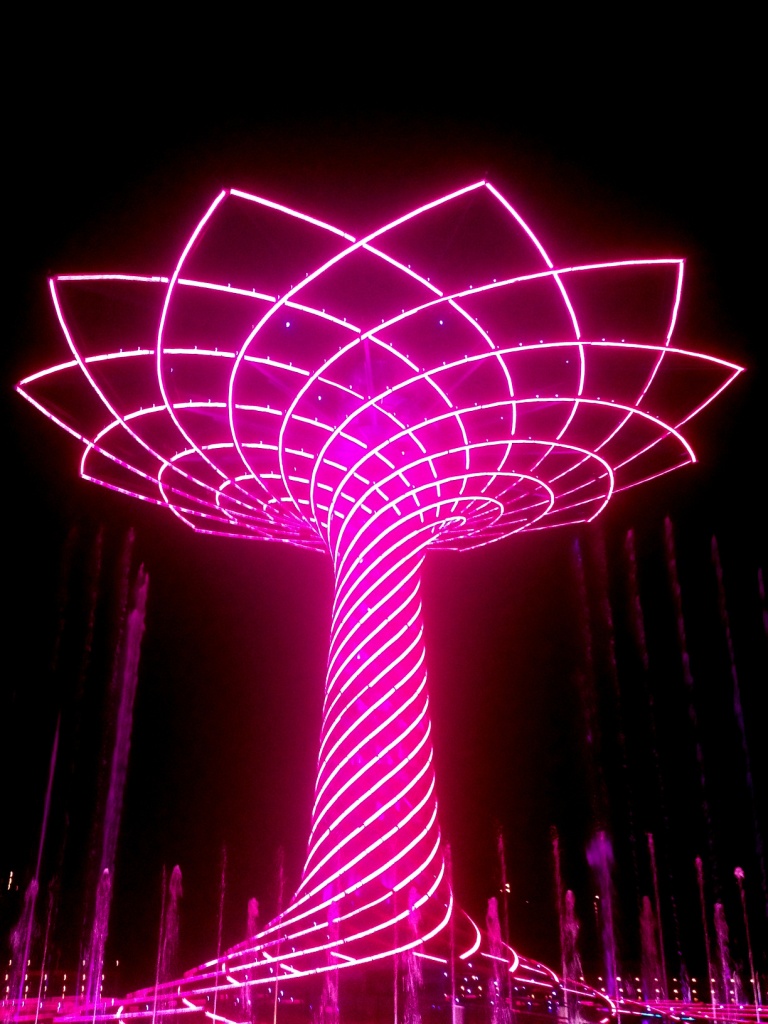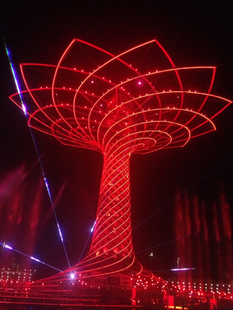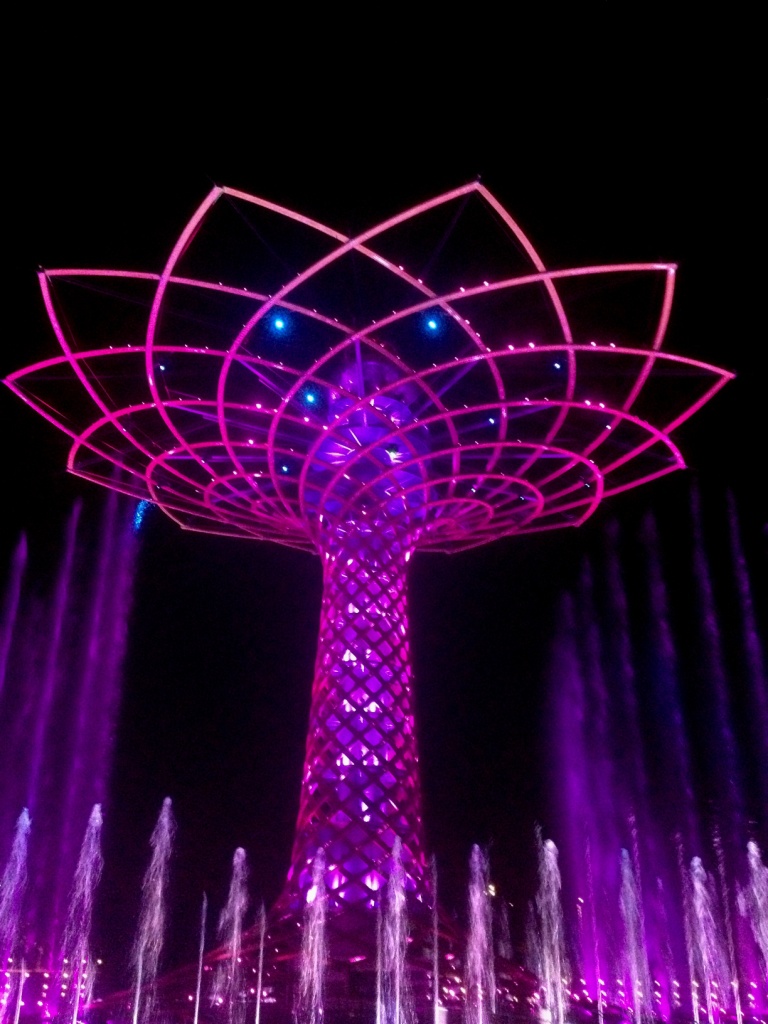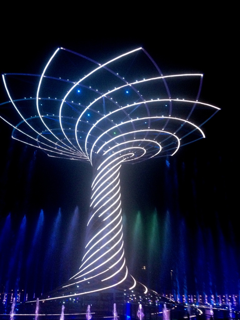 Verso sera inizia la grande corsa allo spettacolo dell’Albero della Vita che e’ sempre affascinante e bello. E’ sempre una magia che durante il giorno pian piano cresce in attesa degli spettacoli serali.