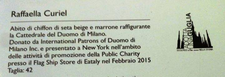 Indubbiamente il Museo e’ un luogo magico dove si respira tutta la bellezza e il valore che il NOSTRO DUOMO emana in ogni suo angolo, in ogni suo pezzo esposto e, in ogni guglia. Gli abiti e gli accessori di Giorgio Armani, Brunello Cucinelli, Cividini, Corneliani, Costume National, Diesel, Etro, Salvatore Ferragamo, Genny, Gucci, Isaia, Krizia, Loriblu, Martino Midali, Missoni, Moncler, Moreschi, Prada, Emilio Pucci, Roberto Cavalli, Tod’s, Trussardi, Vicini, Vivienne Westwood hanno completato lo scenario da sogno del Duomo di Milano. Una storia di emozioni e di generosità, uno straordinario monumento figlio della creatività milanese.