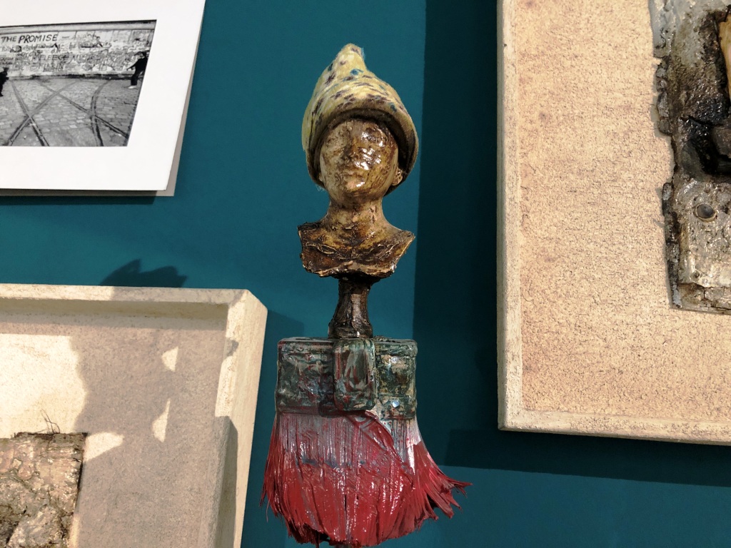 Le fotografie della collezione sono sapientemente abbinate ai dipinti di Albanese, ma ci sono anche oggetti etnici assai curiosi poltrone vintage e vecchie radio posizionati con abilita’ e raffinatezza in mezzo ad opere di artisti che fanno dell’artigianato la loro arte. Come i bottoni o il Bouquet di Cinzia Mauri.