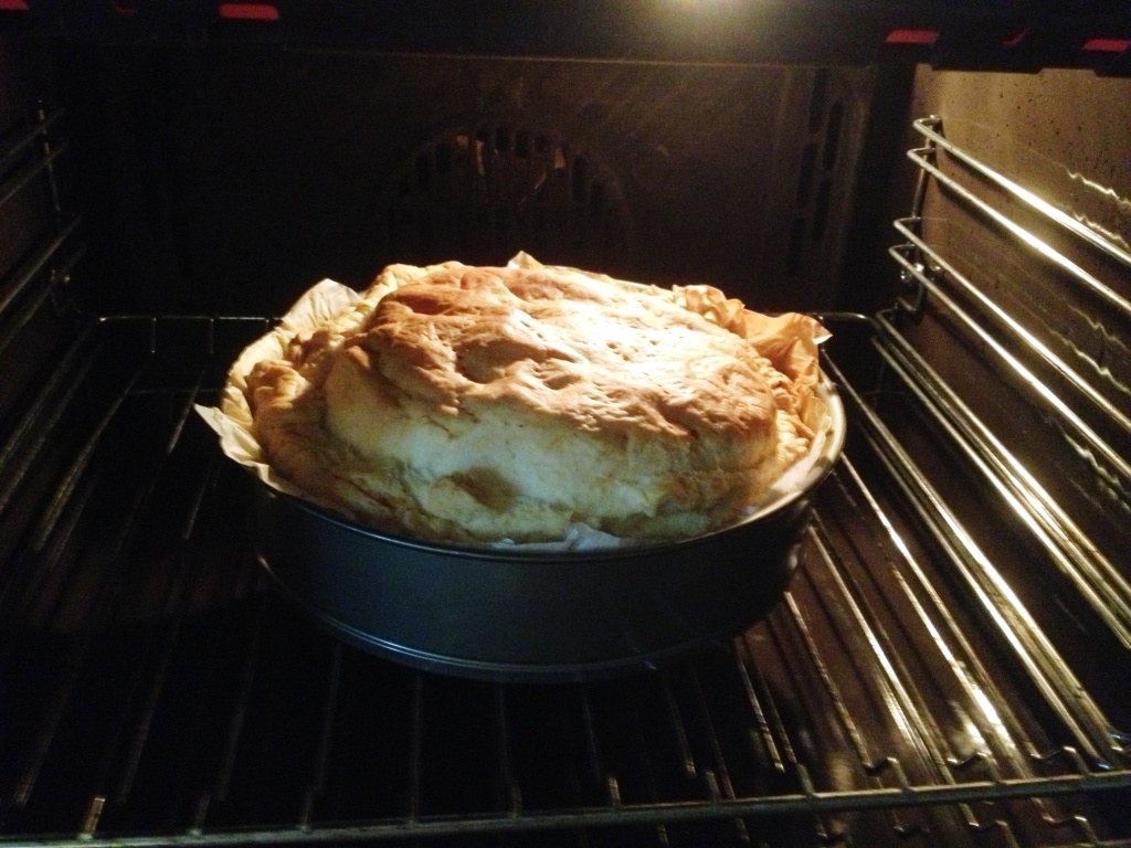 Infornare a forno ventilato pre – riscaldato a 180° per 1 ora, controllare con uno stuzzicadenti e procedere ancora di 10 minuti in 10 minuti. La cottura deve essere lenta altrimenti il composto non cuoce, oppure resta crudo il fondo.