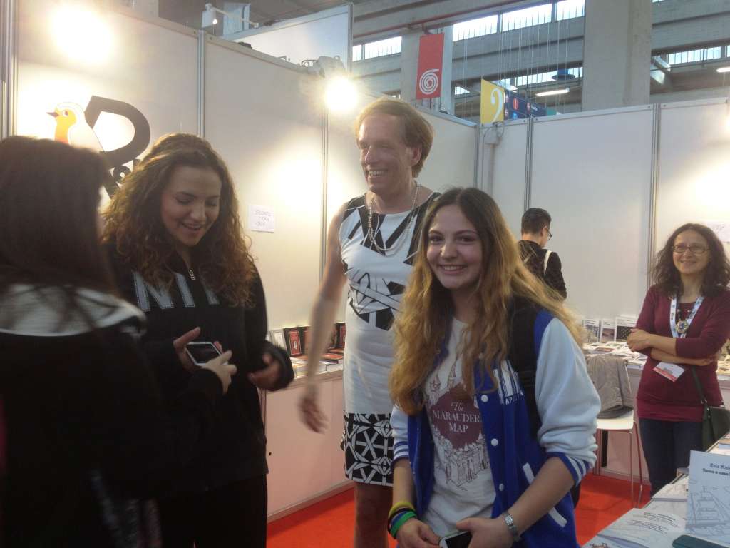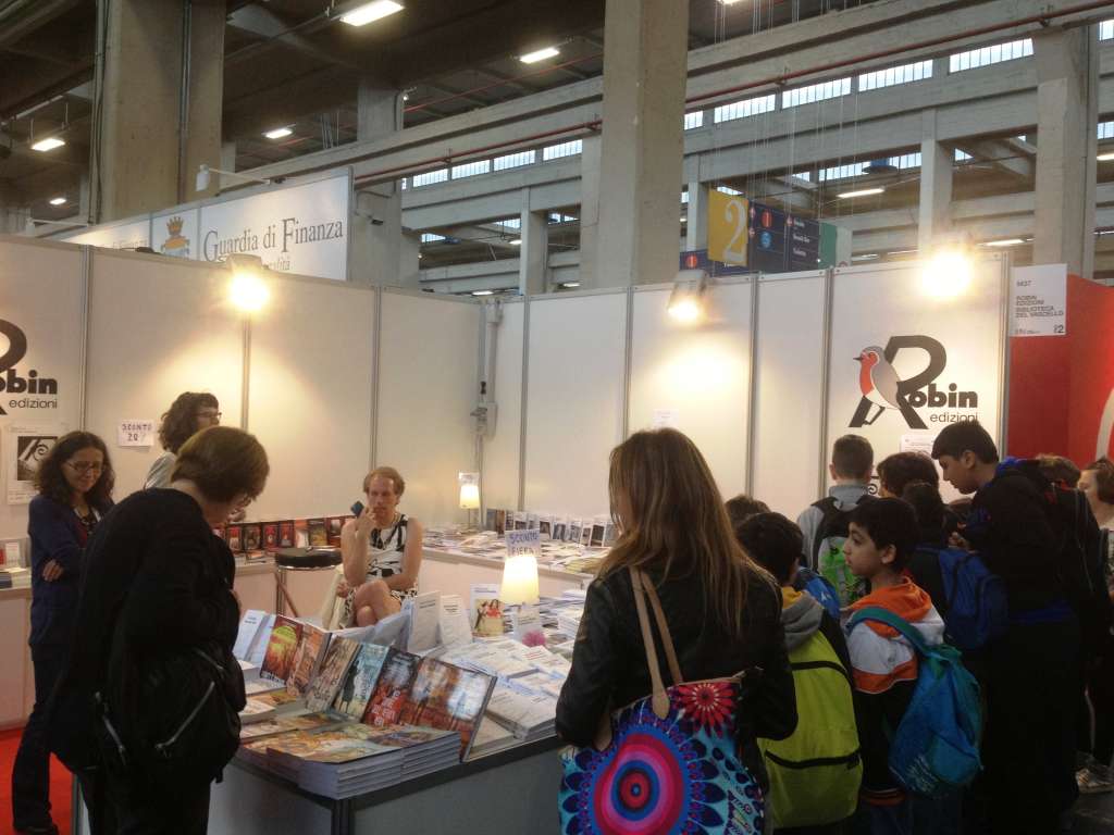 Abbiamo passato la giornata insieme spostandoci da uno stand o da un padiglione all’altro per rispondere alle richieste dei giornalisti, un breve break per mangiare qualcosa e tanti amici che sono venuti alla Robin Edizioni a farci un saluto.